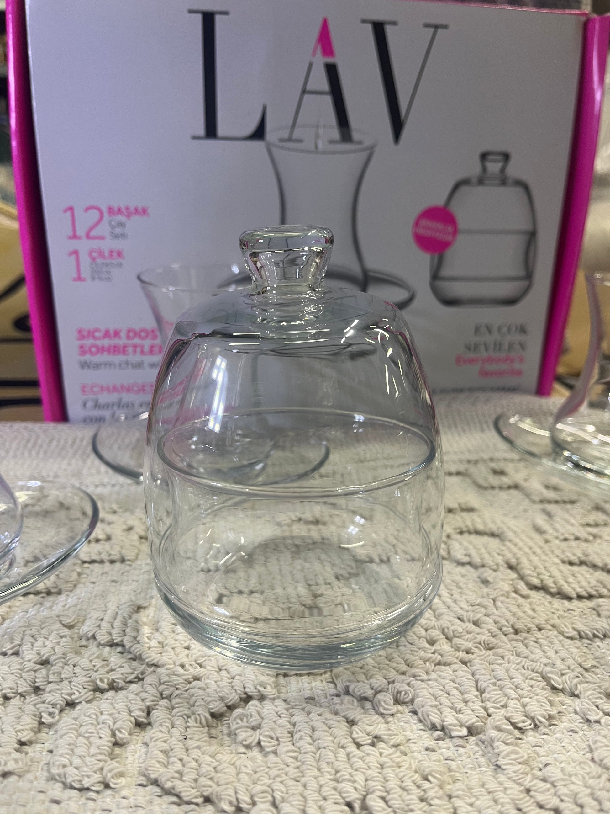 1 sucrier en verre avec couvercle.